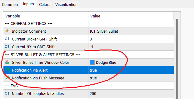 And I agree with you a lot of alerts is annoying :), In the current version you can disable the alerts for the FVG inside the silver bullet window, just switch the flags below to false. I will add your suggestion to send alerts on the beginning of the Silver Bullet window too, very good suggestion as I personally sometimes miss some window :D I did it yesterday on GBPUSD.