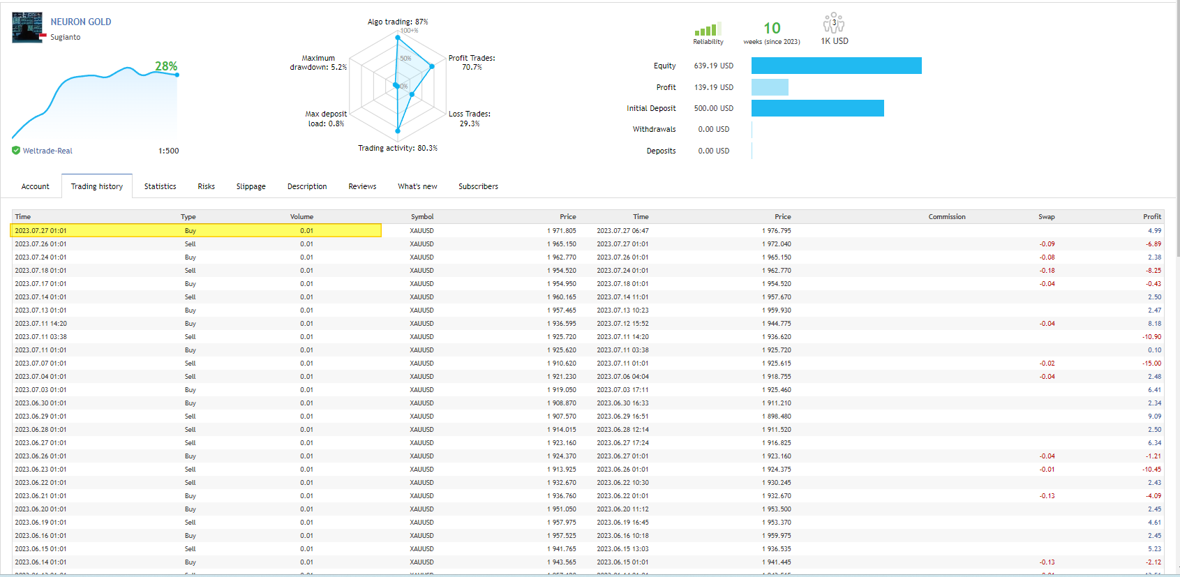 No doubt that this EA has struggled during the month of July, as can be seen from the signal account. And it looks like today will be another loss as well. Let's see how it performs in the month of August.
