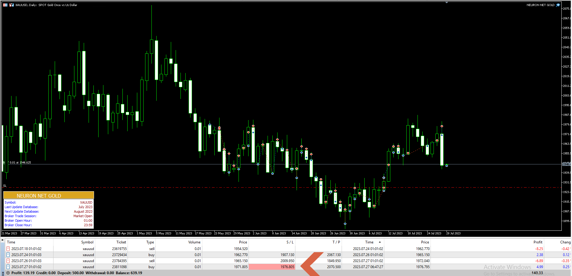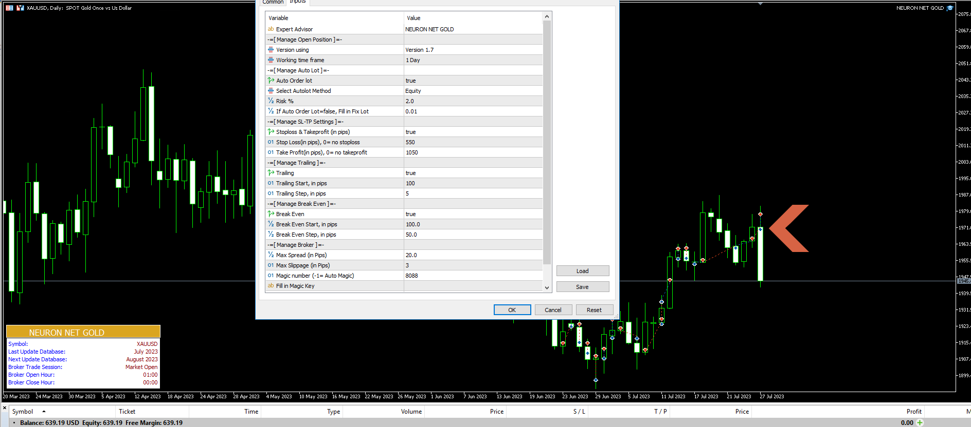 as you can see, Neuron Gold at my place also takes a buy like yours position, and I use the default set.