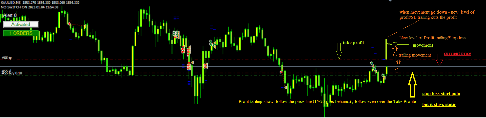 now a Sell deal , but the same, trailing should move following the Price movement to cut the deal if price/movement change direction