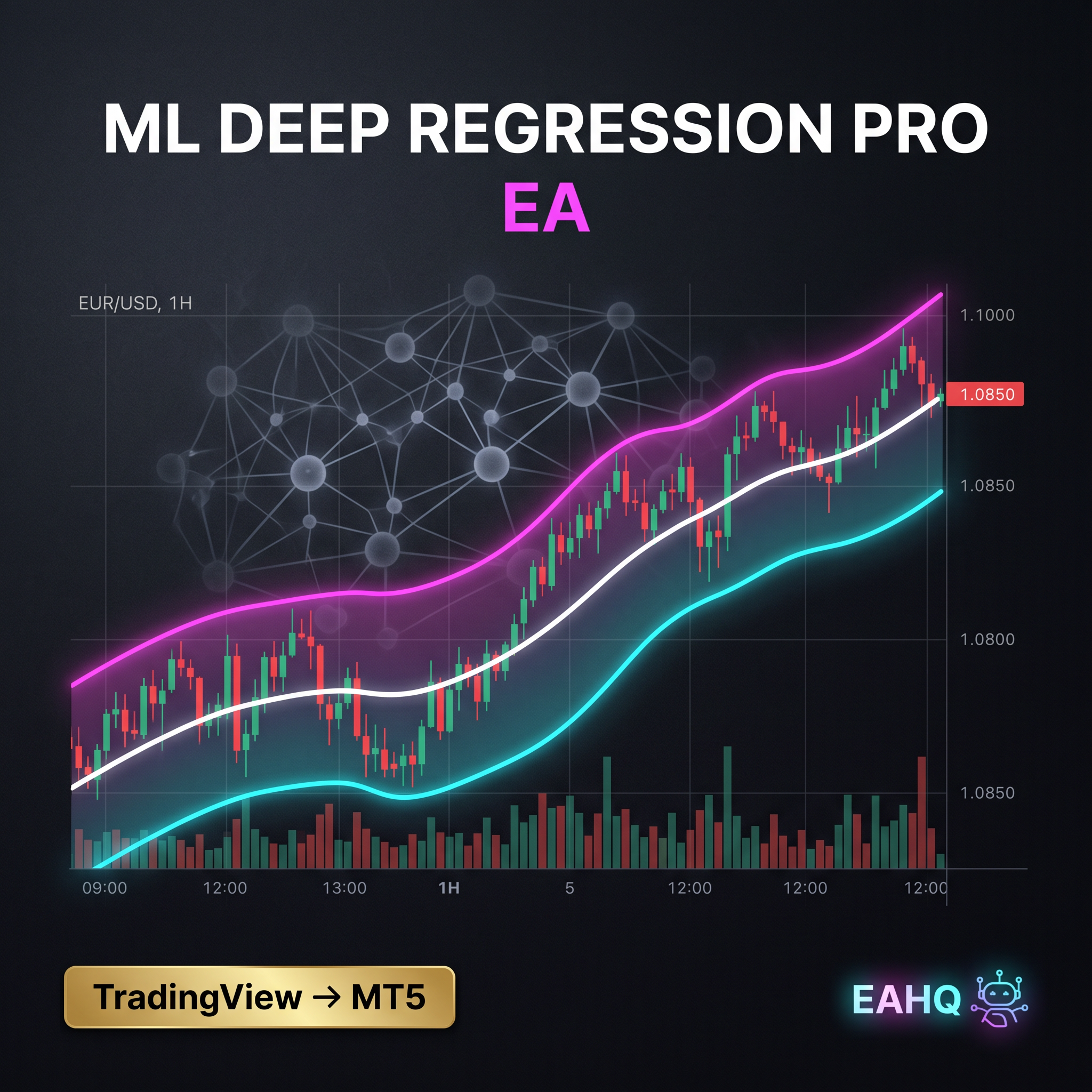 This one's the upgrade. ML Deep Regression Pro takes a regression-based Pine Script concept and pushes it further — deeper fit, adaptive bands, and automated execution on MT5.