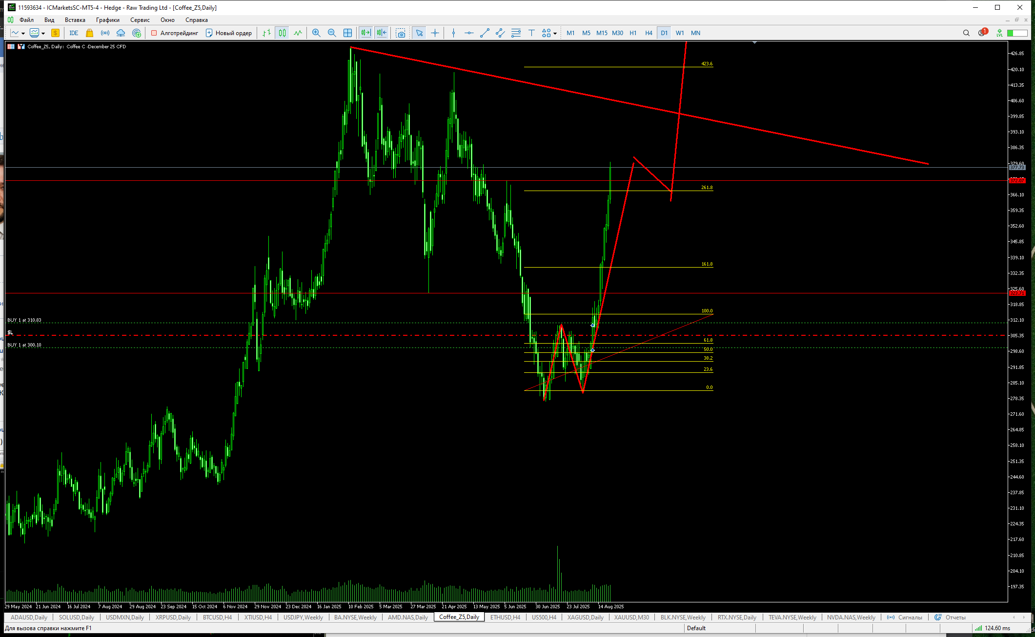 Coffee continues to rise, the forecast is confirmed, and I expect a local correction to develop in the near future