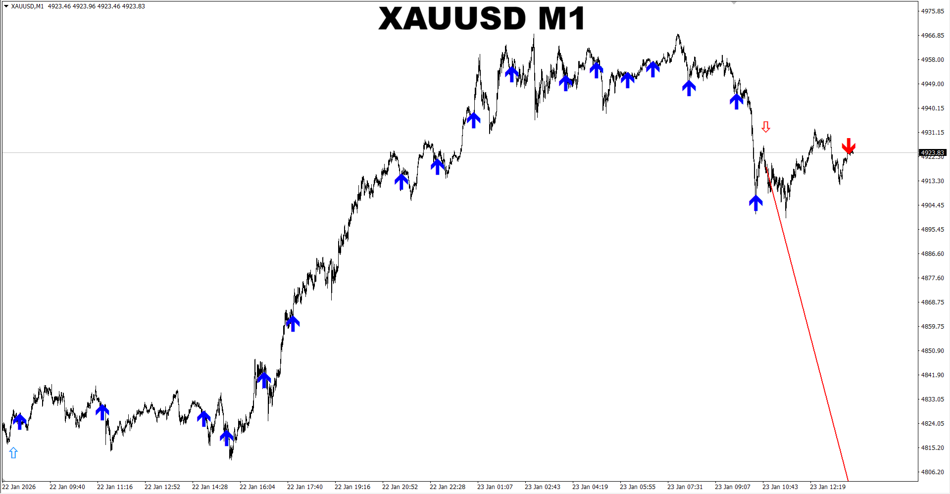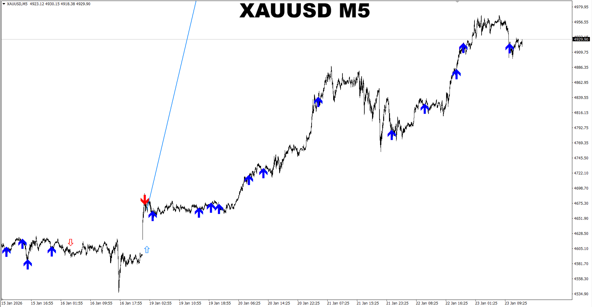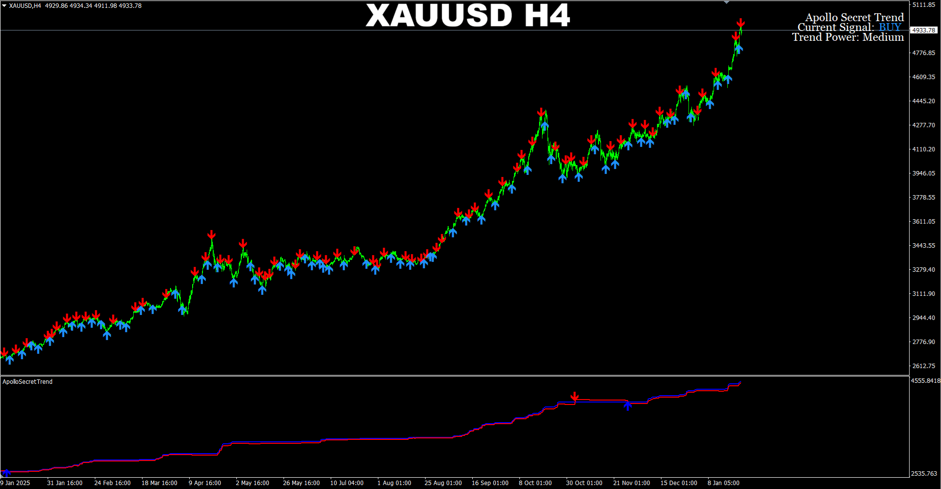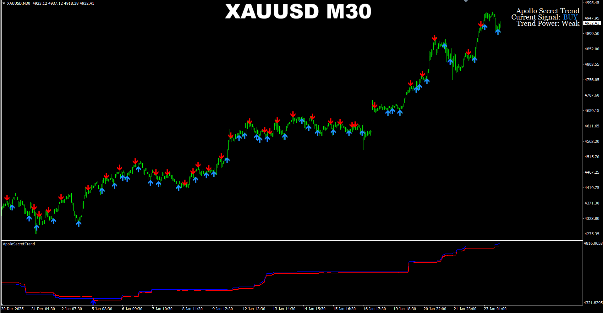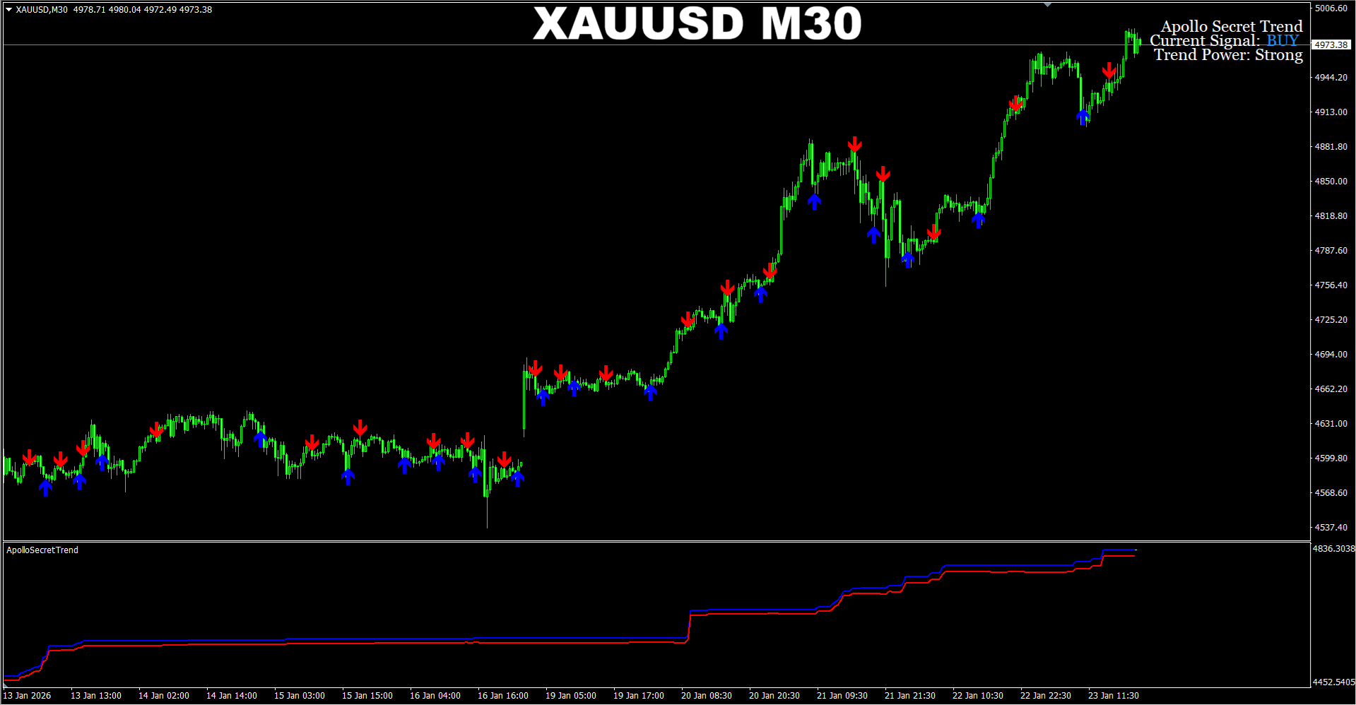 Apollo Secret Trend + Pro Renko System arrows. Default settings. XAUUSD M30. Recent signals performance. In the example provided we take only BUY arrow signals.