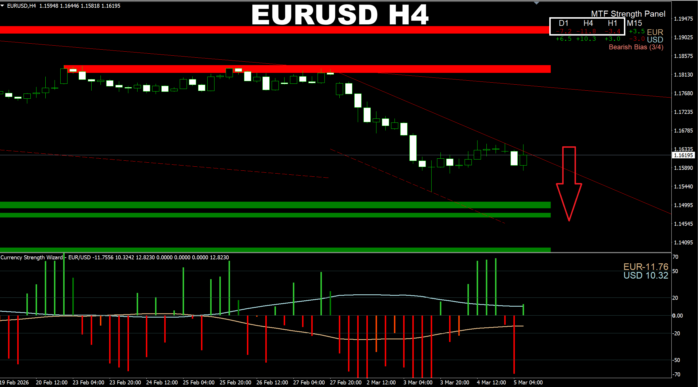 Currency Strength Wizard. XAUUSD H4. Update on current market. It seems we will continue seeing the SELLING pressure in short-term perspective. It is too early to BUY. Moreover I believe it is possible to SELL it, at least for now while the SELLING pressure still prevails.
