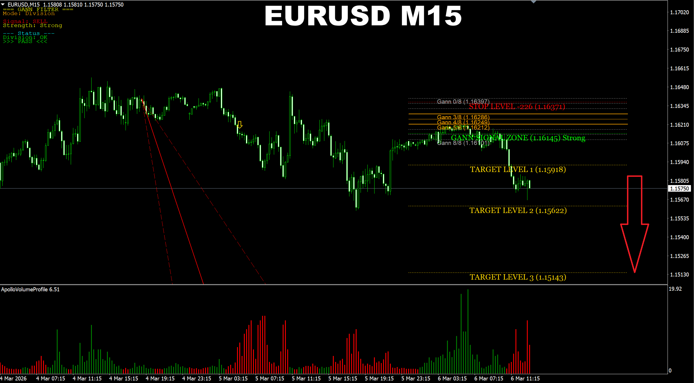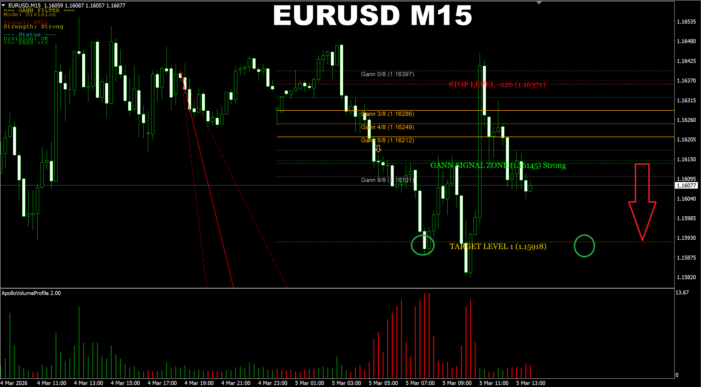Gann Made Easy. EURUSD M15. Update on current market. It seems the price now will move to the Target Level 1 again with further chance of going lower.