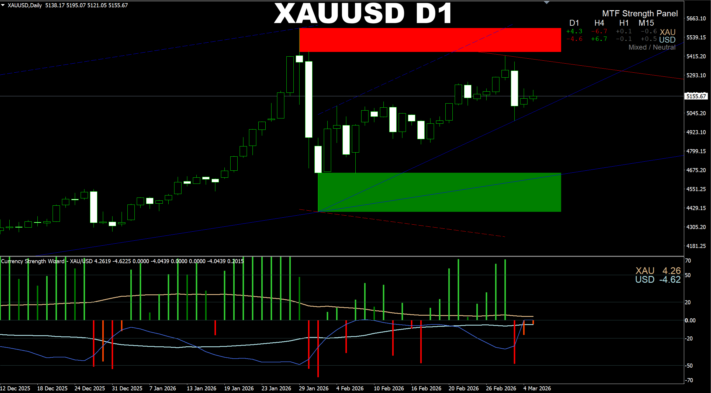 Currency Strength Wizard. XAUUSD D1. Based on the position of the swing predictor line and the strength lines + overall MTF neutral conditions, it seems the price is not ready as for now to continue going UP as it still needs to accumulate enough volume for this to happen. Current outlook is range conditions with short-term selling pressure as the H4 TF shows that the selling pressure is still prevails in short-term perspective.