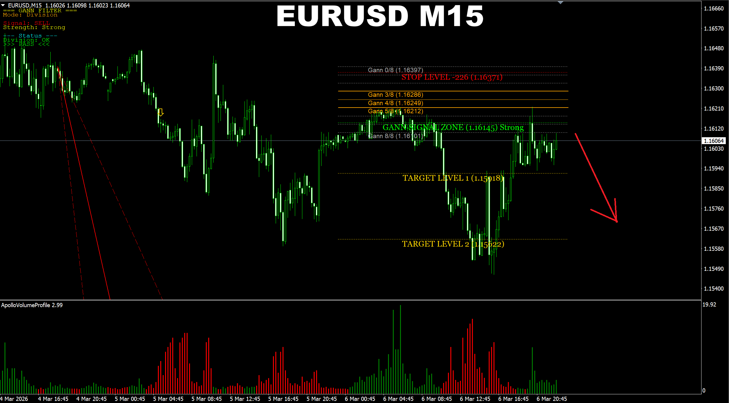 Gann Made Easy. EURUSD M15. Another update on the progress of the SELL signal. Price has reached the 2nd target only. But the prediction is still active and we may consider the 3rd target area which the price will probably get to the next week. Anyway I will provide the update on the market direction next week.