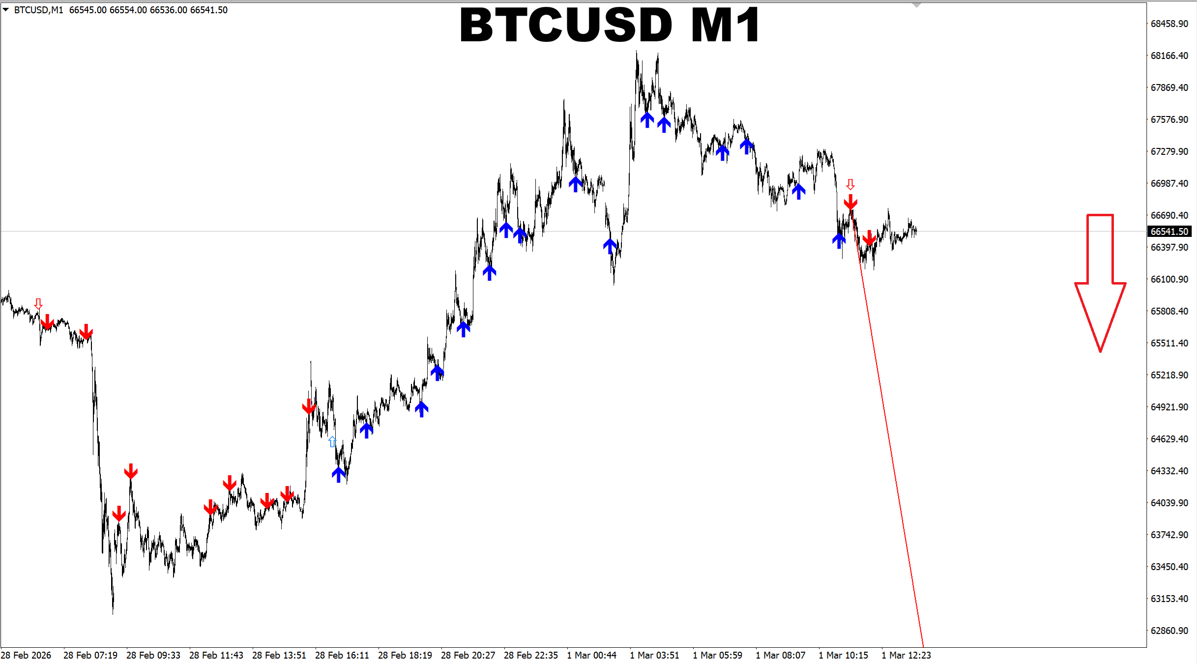 Gann Made Easy. BTCUSD M15. Another update on current market. First part of the prediction was correct. Price has got up to the 66K area. Now it is possible to start looking for SELL opportunity. But for conservative entry it is recommended to wait for volume bars change before selling.