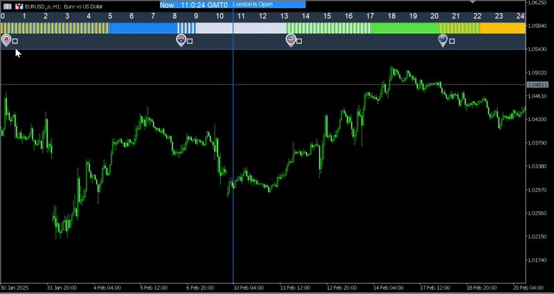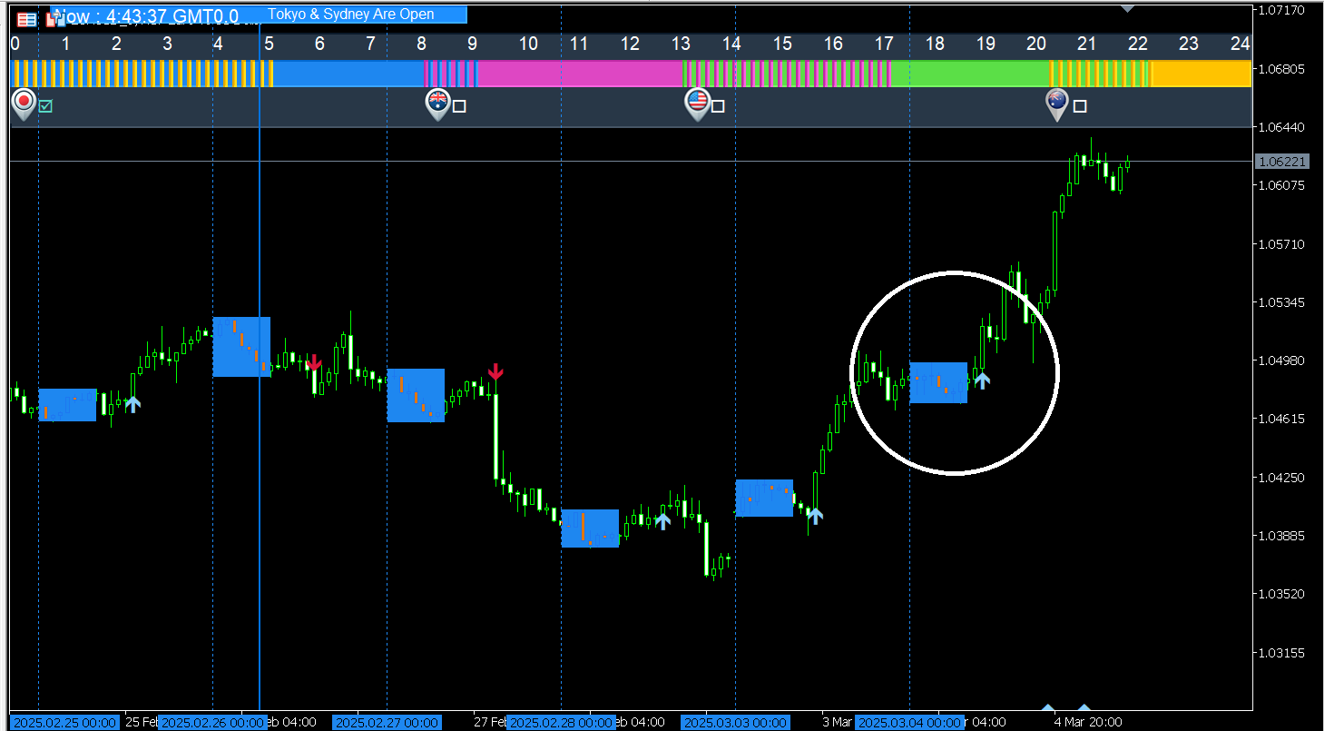 ✅ A colorful box 📊 shows each session (Tokyo, London, New York, Sydney)