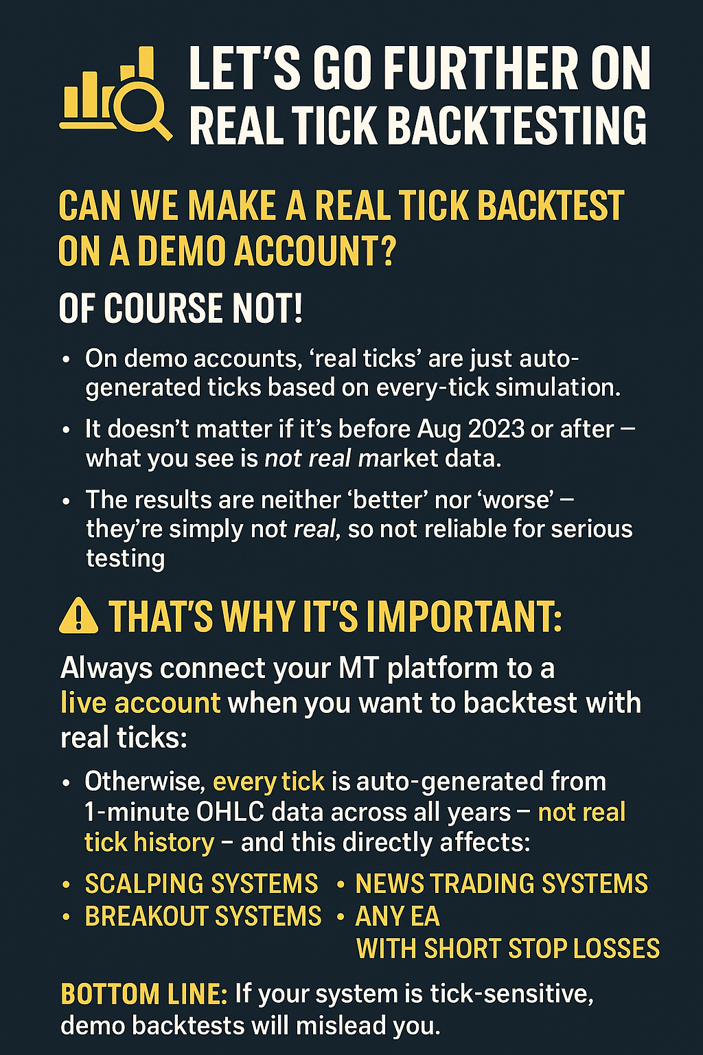⚠️ Backtesting only valid with Real Ticks — don’t trust shortcuts!