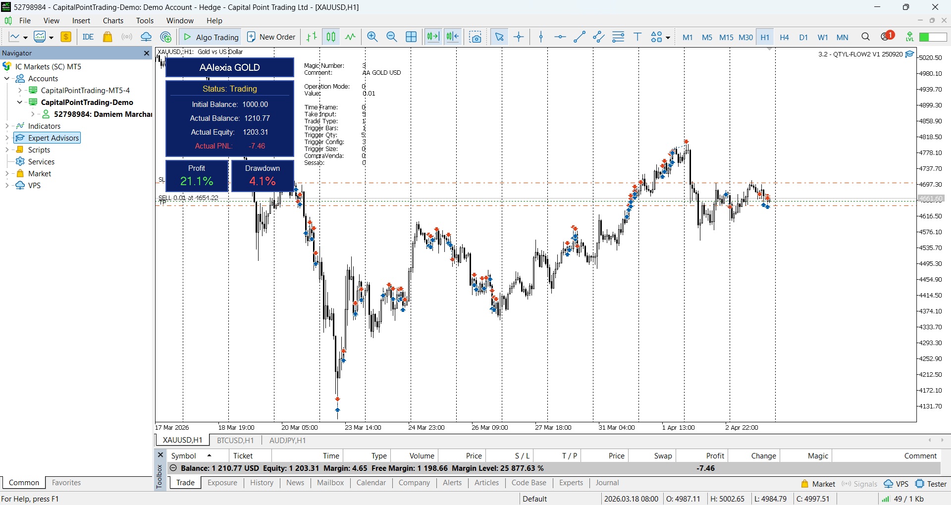 AAlexia GOLD — Motore di precisione Fair Value Gap (FVG) per il trading sull'oro REAL LIVE SIGNAL Broker: IC Trading Server: CapitalPointTrading-Demo Account: 52798984 Password: #Investor99 AAlexia GOLD non è progettato per seguire il mercato. È progettato per aspettare — ed eseguire con precisione. Nel mercato dell'oro, il prezzo non si muove in modo perfettamente efficiente. Lascia squilibri, lacune nelle consegne e aree in cui l'esecuzione è stata incompleta. Queste inefficienze non sono