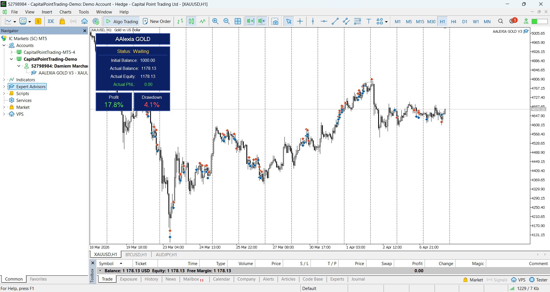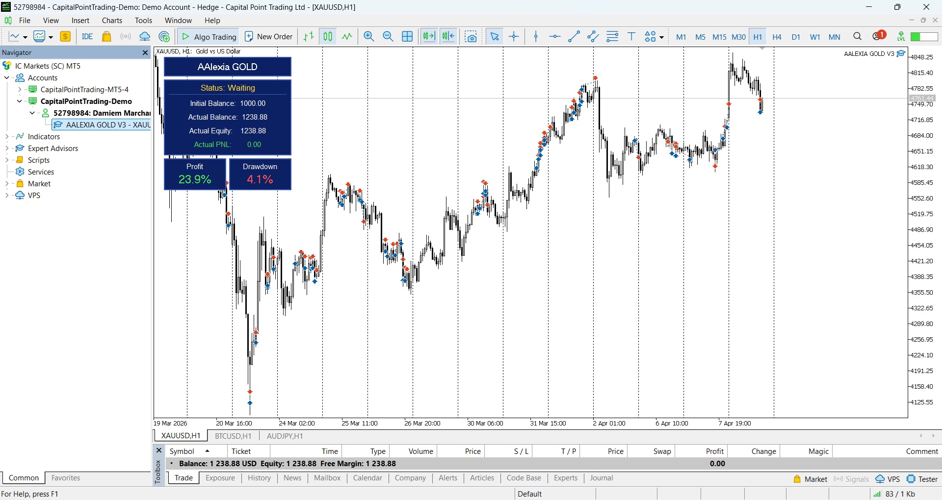 AAstrid GOLD — Motore di esecuzione a blocchi per il trading istituzionale sull'oro REAL LIVE SIGNAL Broker: IC Trading Server: CapitalPointTrading-Demo Account: 52811900 Password: #Investor99 AAstrid GOLD non è l'ennesimo robot eccessivamente ottimizzato basato su backtest perfetti. Si tratta di un vero Expert Advisor, progettato per operare in condizioni di mercato reali — tenendo pienamente conto di volatilità, drawdown e incertezza. Il mercato dell'oro non premia i sistemi fragili. Premia la