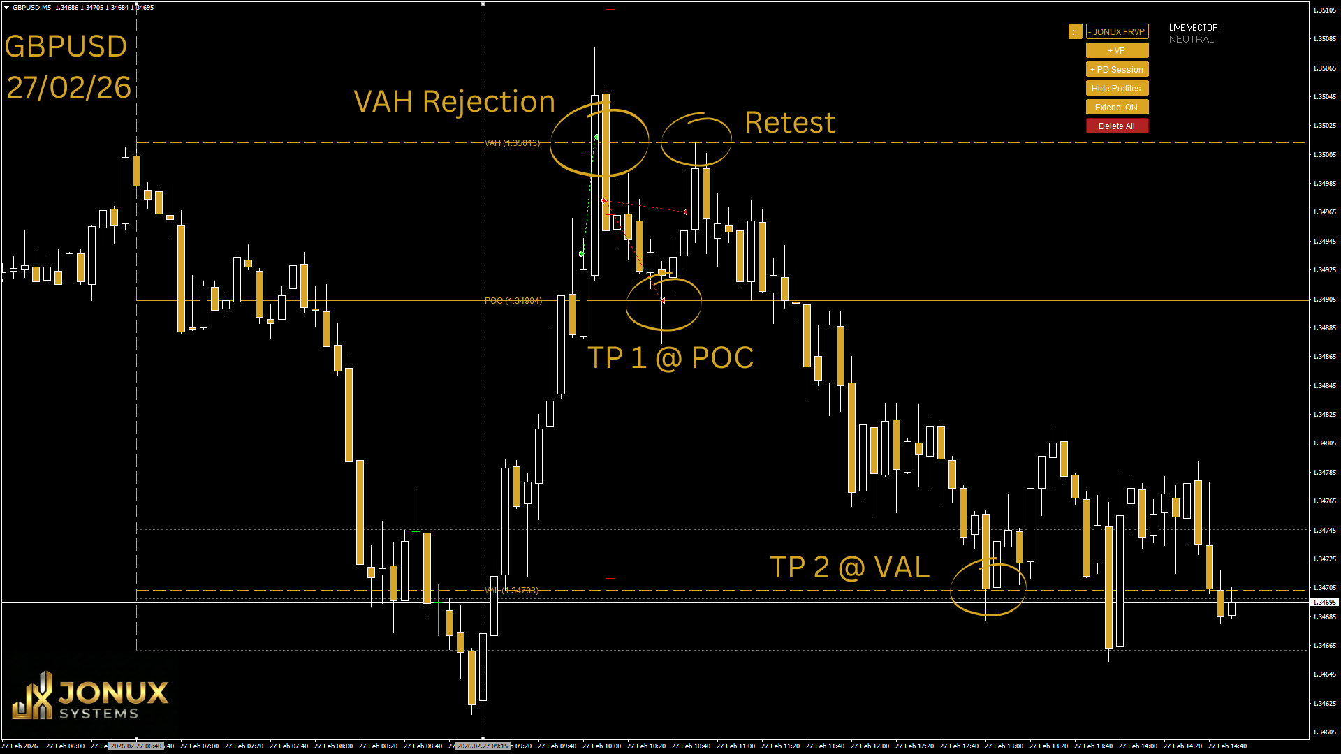 Using the JONUX Volume Profile, our targets were mathematically defined before the trade even began: