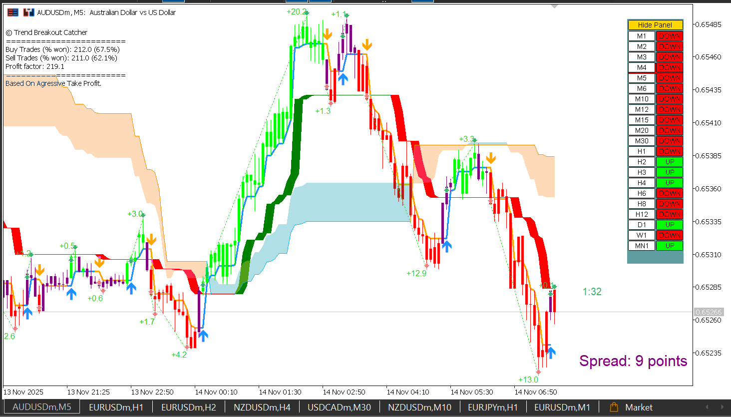 🔹 Works on M5–H1 timeframes across Forex, Gold, Indices, and Crypto