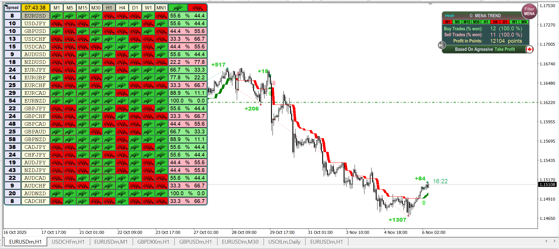 Catch both trends and potential reversals with live alerts, all laid out in a visual style that works on major pairs like EURUSD, AUDUSD, XAUUSD in timeframes M5-H1.