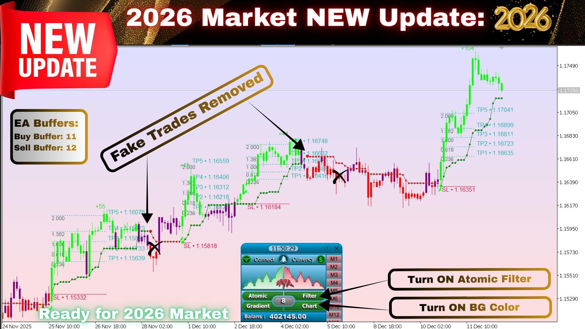 A brand-new market filter designed specifically for the 2026 volatility environment. Enhances accuracy and filters out weak signals.