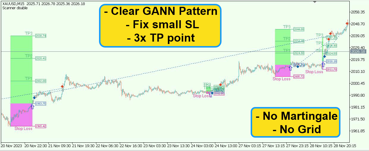 Welcome, Gold GANN Expert opens automatically trade with Highly profit, Fixed small Stop loss.