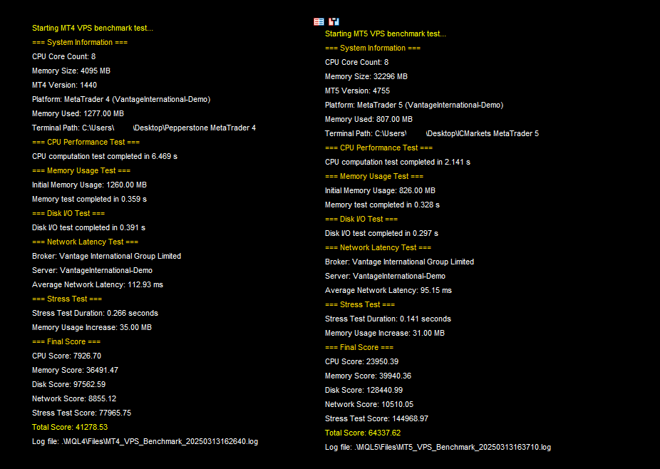 My VPS has a total score of 41000 on MT4 and 64000 on MT5, how about yours?