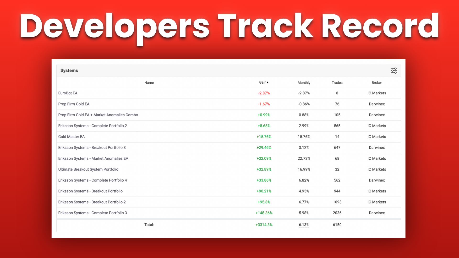 Just systems built to survive different market cycles and continue trading over the long term.