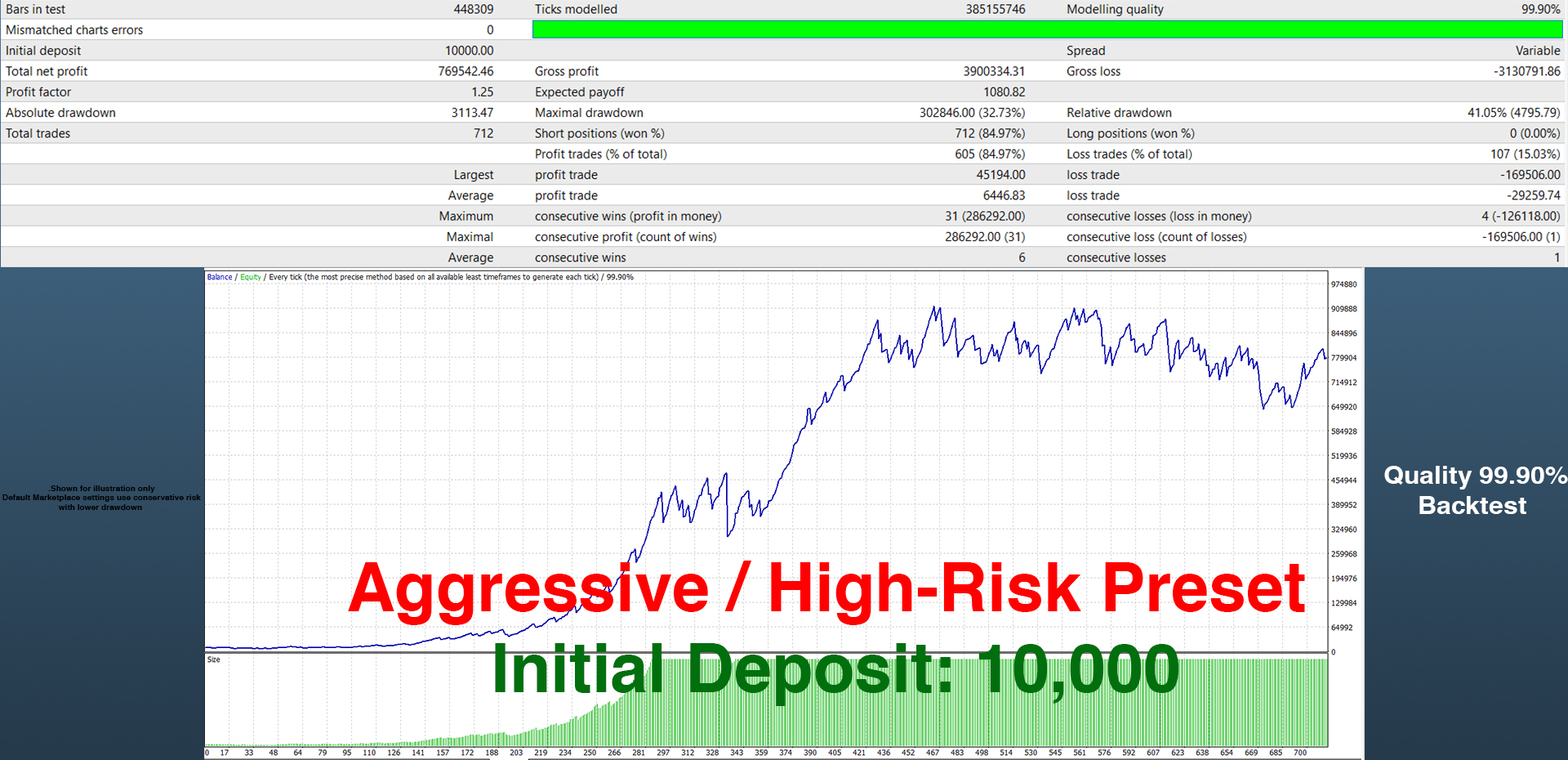 👉 Conservative and balanced presets are available in the product for users who prefer lower risk.