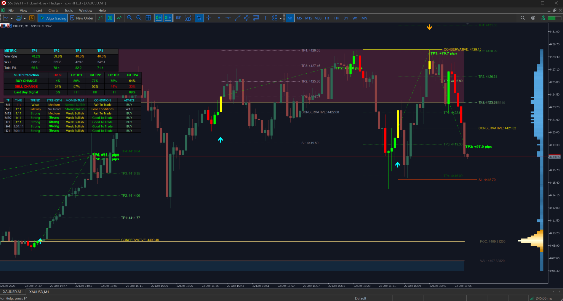 We have now reached the stage where signals activate the trading lines. However, I’m facing an issue where the system fails to recognize when an order has hit its Take Profit (TP), even after it has done so. I am currently working on a fix for this.