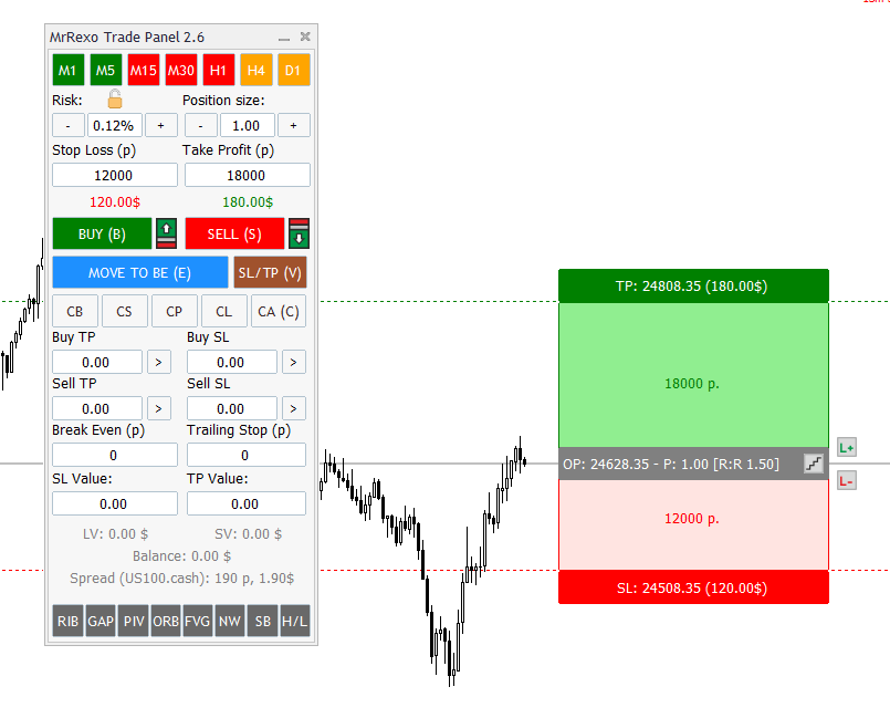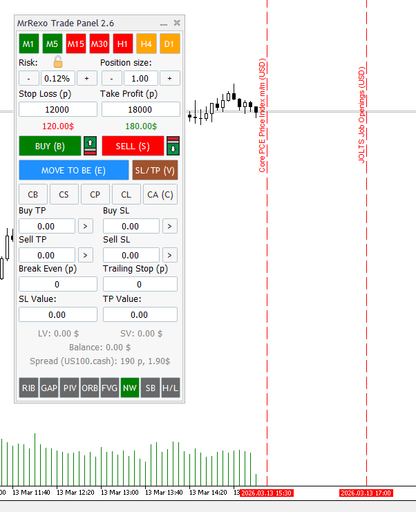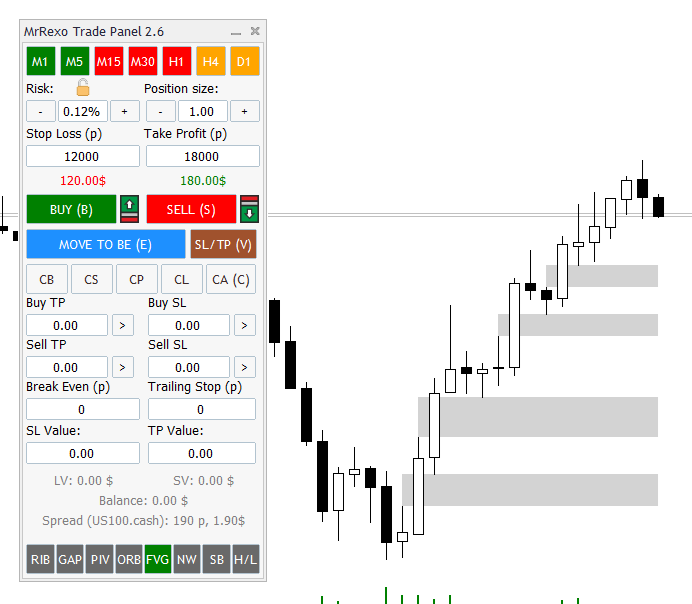 La invitiamo a visitare mrtp.eu per scoprire le funzionalità del pannello. La demo scaricata dal sito offre il 100% delle funzionalità del pannello, ad eccezione dell’apertura e della gestione delle posizioni. MrRexo Trade Panel è una utility multifunzionale on-chart progettata per operazioni di trading manuale in MetaTrader 5. Integra controlli di esecuzione ordini, strumenti di gestione del rischio e overlay tecnici di mercato in un’unica interfaccia. Il pannello è compatibile con account