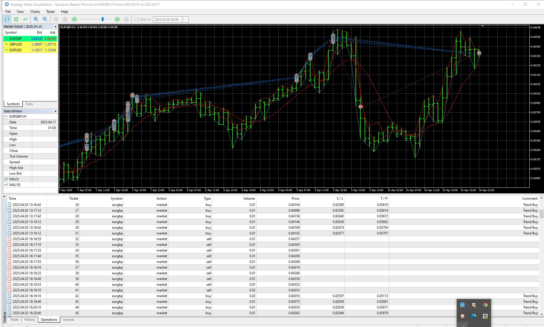 on EURGBP on trend follow strategy it has many strategies lets take one by one