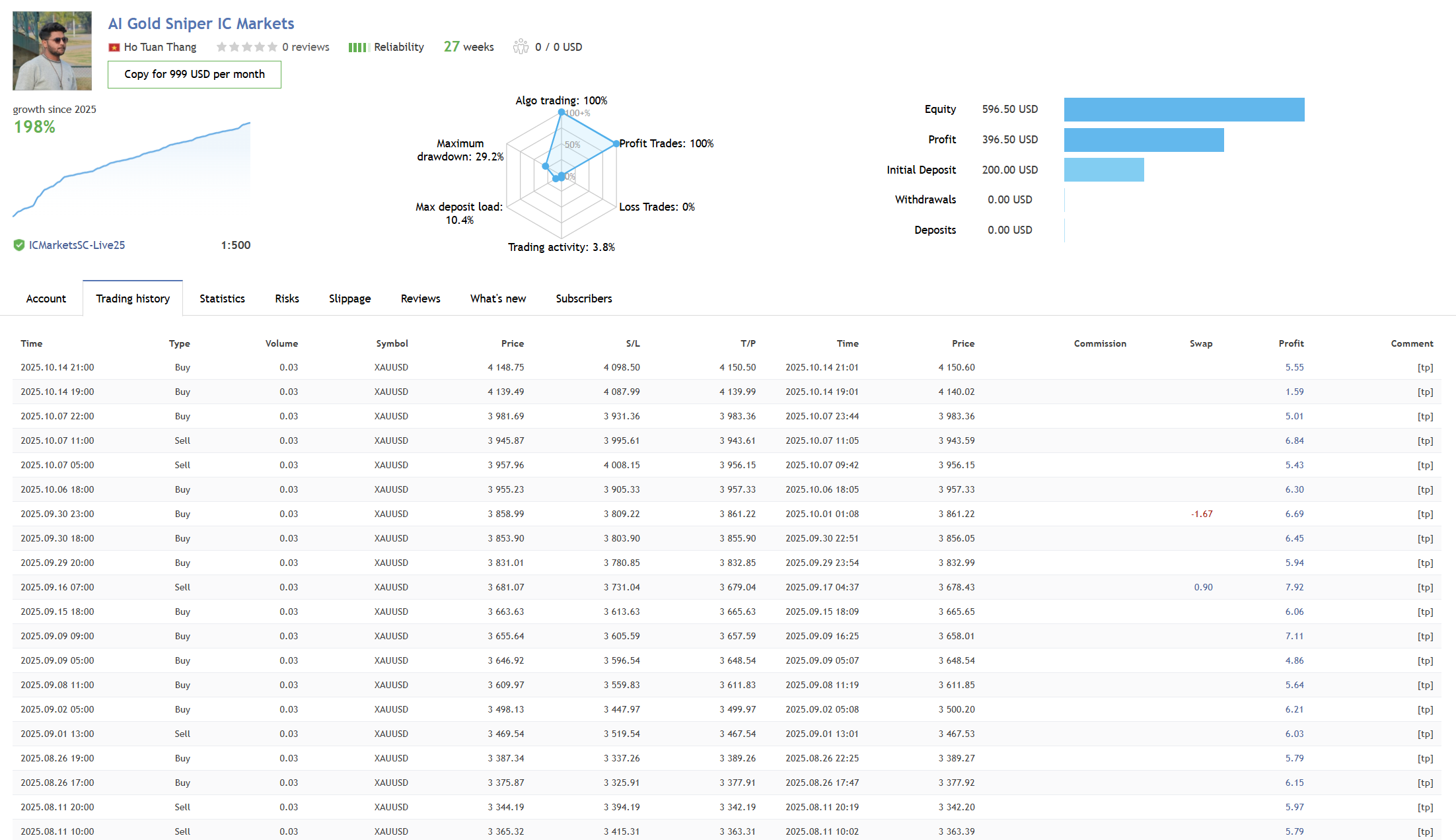 • Consistent execution on IC Markets, one of the world's most respected brokers