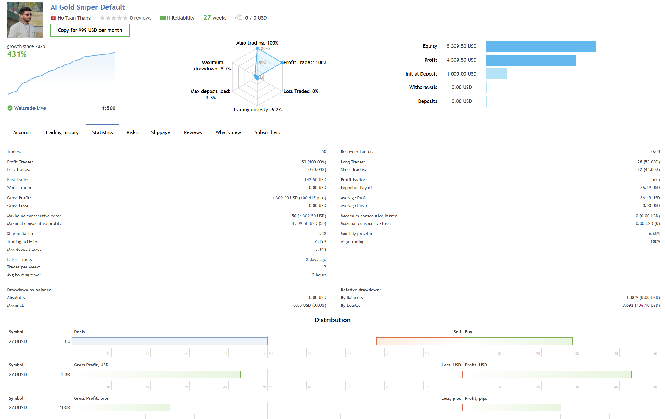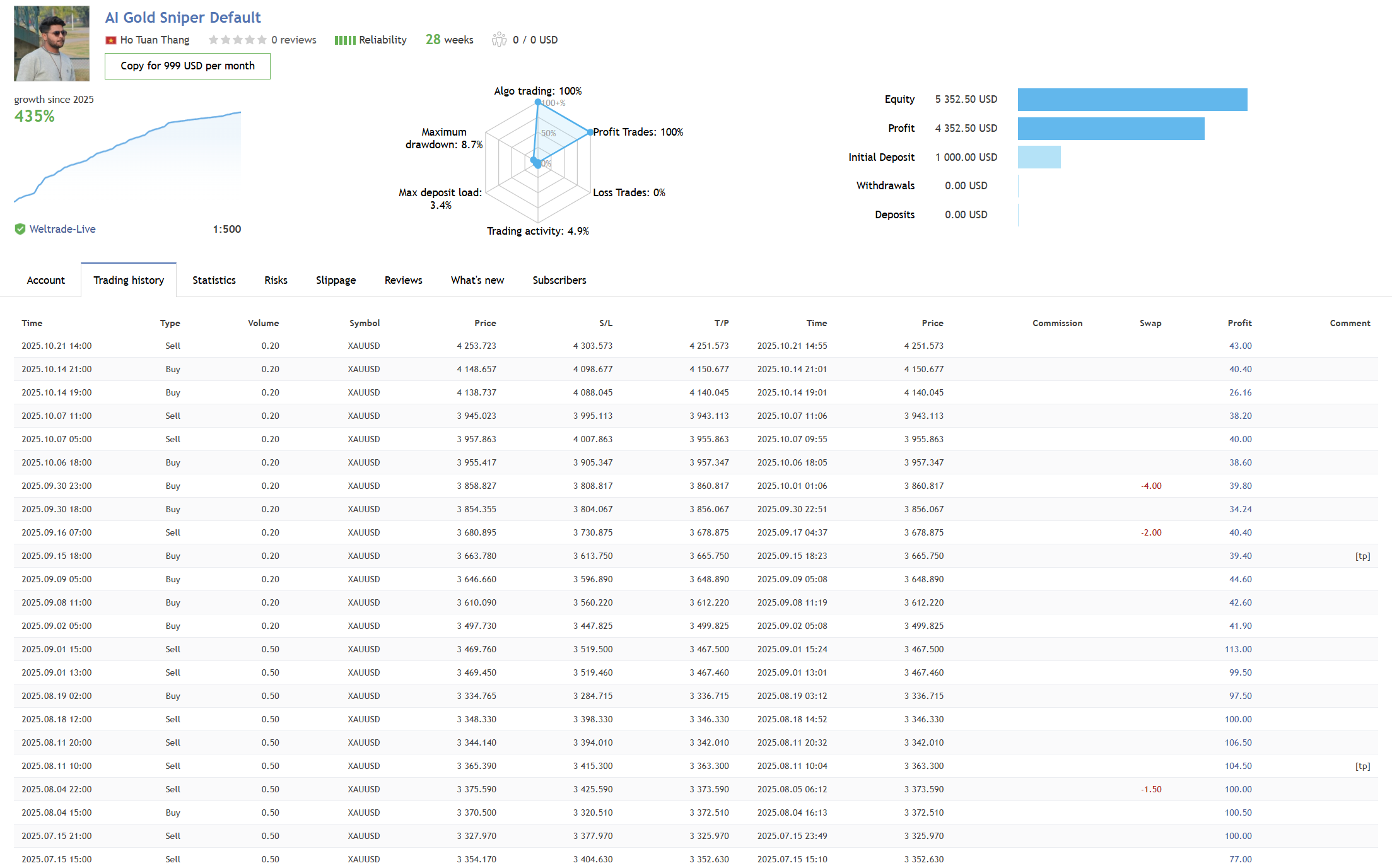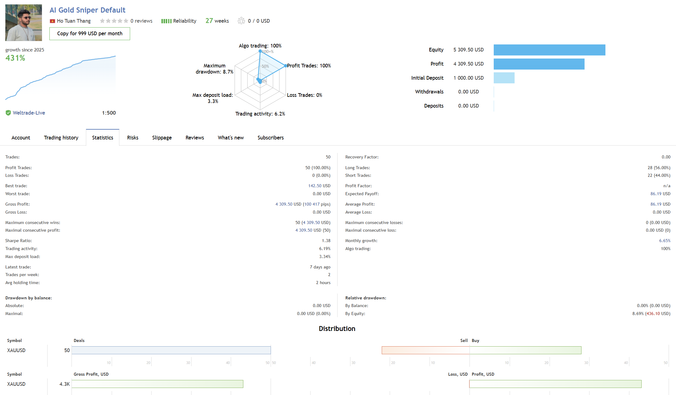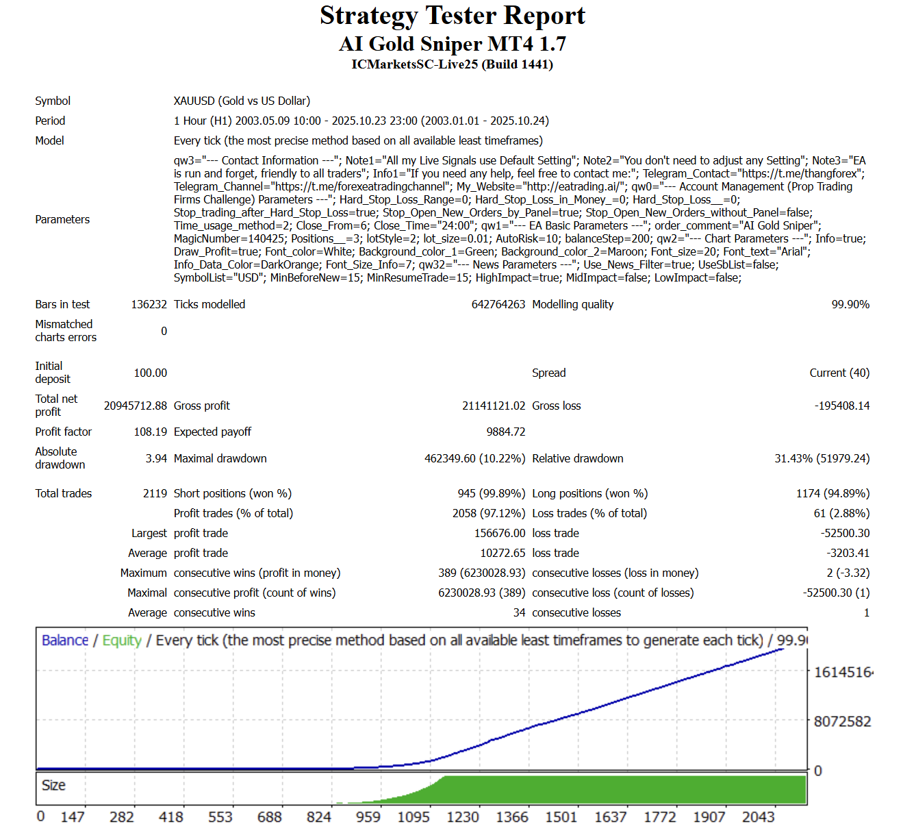 The AI Gold Sniper continues to set new standards in algorithmic trading, proving that precision, transparency, and consistent performance are achievable through advanced AI technology and disciplined execution.