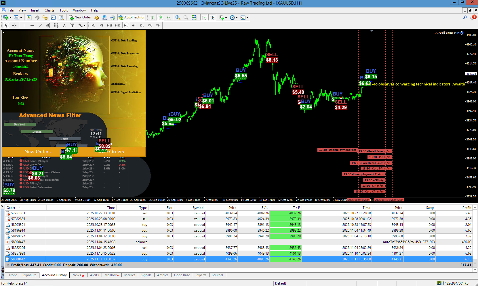 - Understand the Strategy Foundation: AI Gold Sniper achieves this not through risky methods like grids or martingales, but through disciplined scalping, single trading, powered by AI. This minimizes risk and maximizes focus on quality setups.