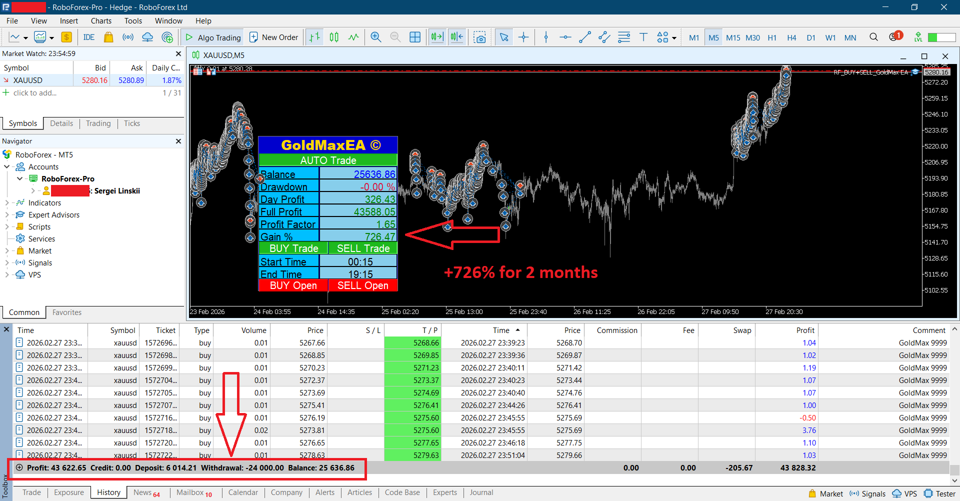 WARNING: New price of GoldMax EA is 611 USD and will increase every week to correspond of Gain % earned by this bot in my real account from 2025.12.30, which can be monitored via my Telegram channel >>> https://t.me/GoldVenamax