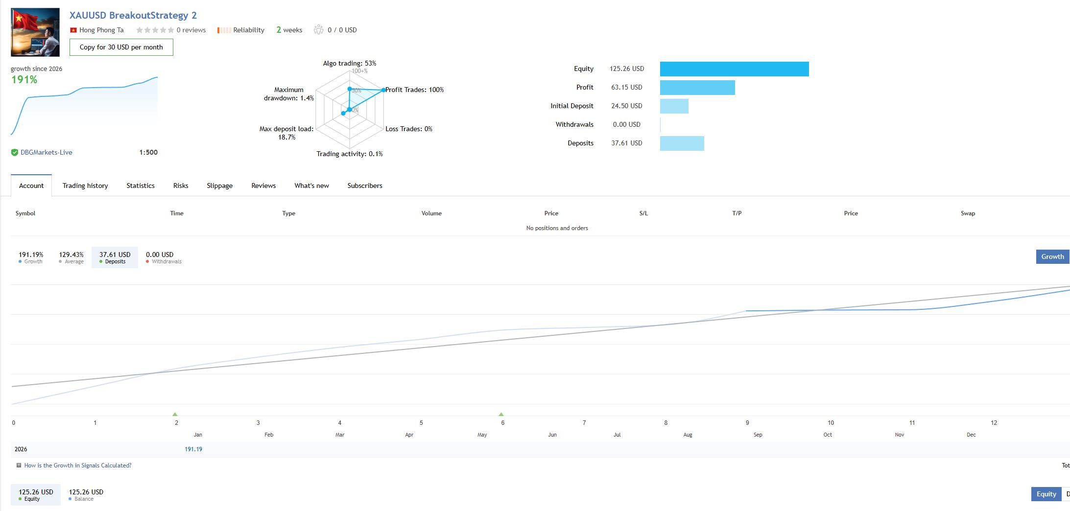 Update 24/12/2025 High-precision XAUUSD scalping signal focused on consistency and capital protection. Trades are executed with strict Stop Loss & Take Profit, no martingale, no grid, no risky recovery. Small lot sizes and disciplined entries deliver stable growth with low drawdown. 📊 Win rate: 94% 📉 Max drawdown: 7.49% 📈 Profit Factor: 6.12