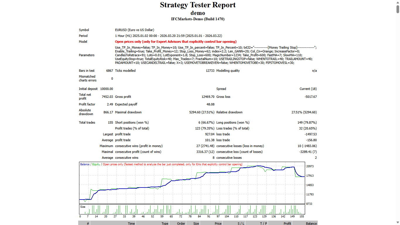 - During tests, the EA only draws the Gann Fan on the screen in visual mode without considering it in the creation of trades,