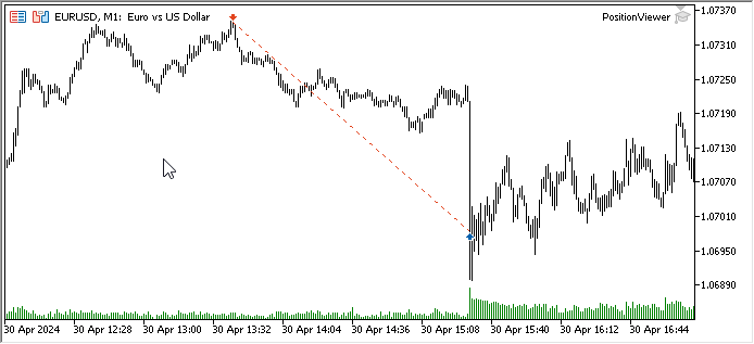 これは、取引を結ぶ線の上にマウスカーソルを合わせなくても、ポジションの説明を確認できるため便利です。Ctrl + Shiftキーを押しながらカーソルキーを使用してクローズポジションのリスト内を移動すると、チャート上に現在表示されているクローズポジションの説明を明確に確認できます。