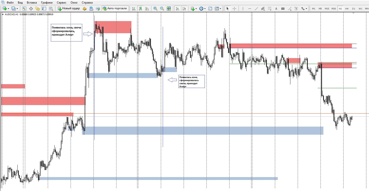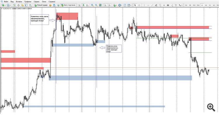 1. Алерт должен появляться при появлении зоны спроса или предложения после сформировавшейся свечи.