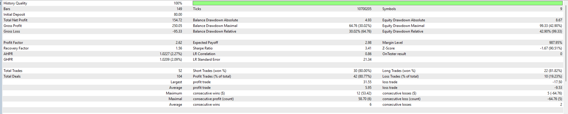 再現のための重要事項: MetaTrader 5でこのバックテスト設定を正確に再現するには、以下を確認してください。