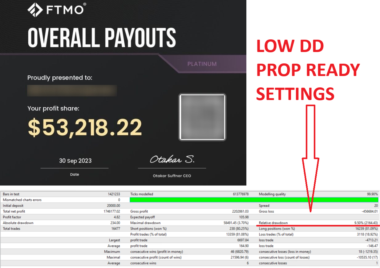 - Prop Firm Compatibility: 100% compatible with prop firm requirements, trade with confidence on funded accounts. Includes dedicated settings for prop firm trading, such as Prop Firm Max DD Percentage and Prop Firm Max Daily DD.- Proven Methodology: Developed using rigorous testing, robust optimization, and real-world trading experience, no marketing hype, just honest results.