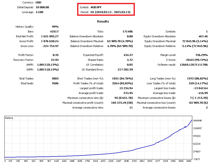 Timeframe: Supports time intervals such as H1, which is suitable for short-term trading.