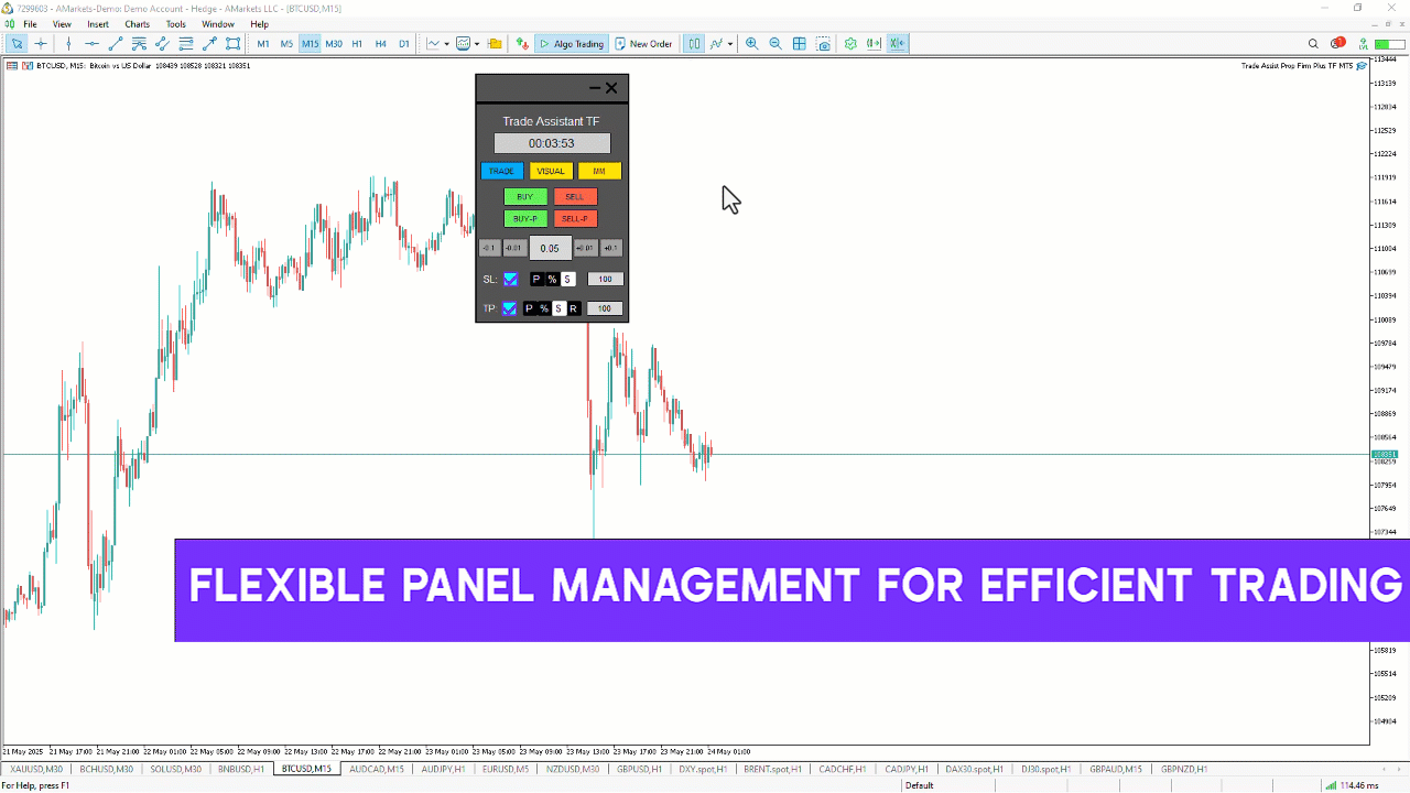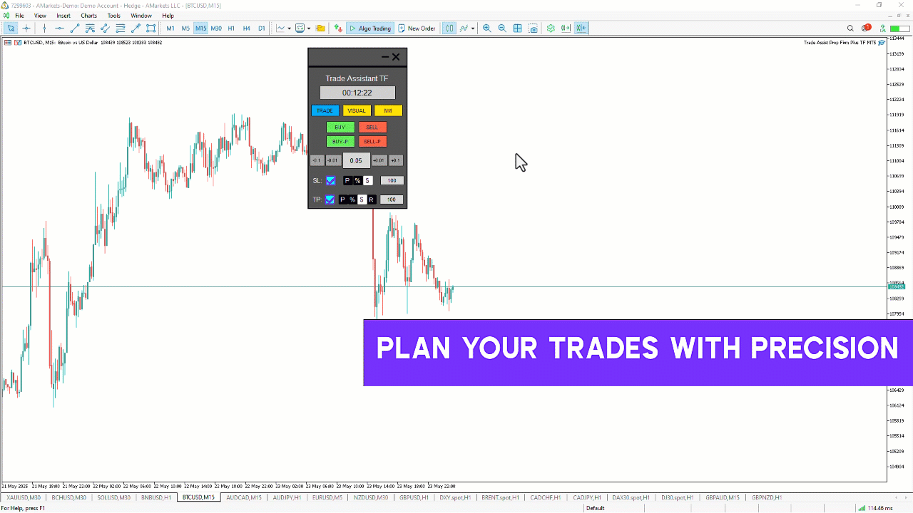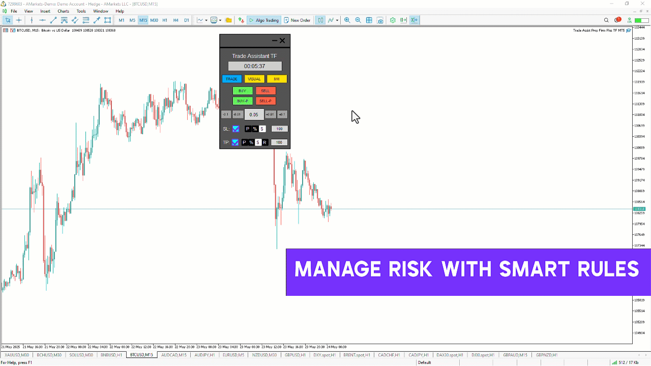 The Trade Assist Prop Firm Plus TF Expert for MetaTrader 5 is a precision-engineered trading solution designed to enhance discipline, risk control, and execution accuracy. Equipped with adaptive tools such as dynamic trailing stops, break-even automation, and multi-symbol handling, it helps traders manage their strategies intelligently while aligning with the strict requirements of proprietary trading firms.