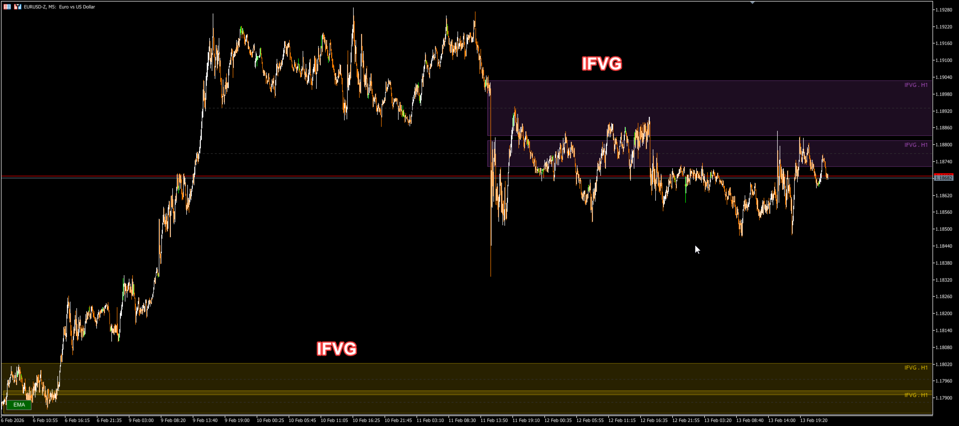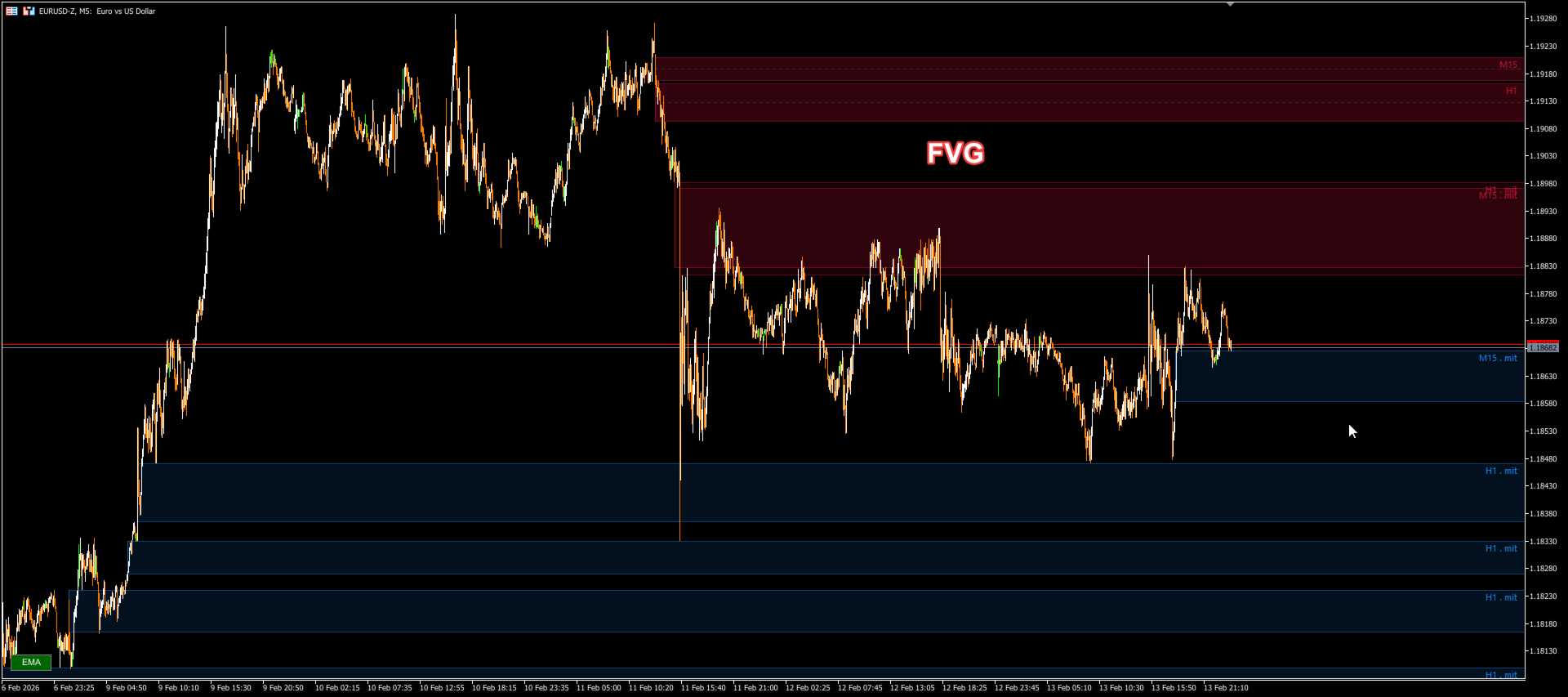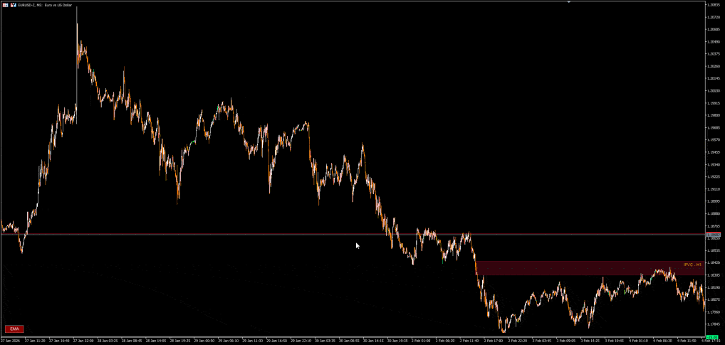 Red (Configurable): Bearish FVG. Potential supply zone. Expect downward rejections.