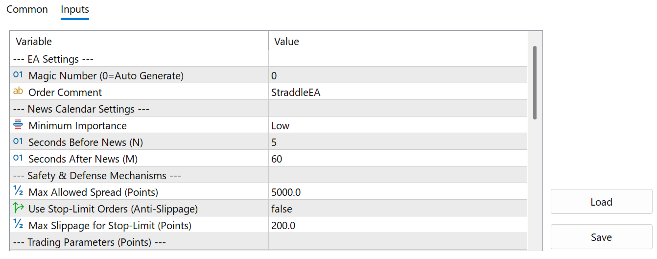 このEAは、MT5の「経済指標カレンダー」の実時間イベントに連動して動作する設計です。メタトレーダーの仕様上、ストラテジーテスター内では「未来のニュースイベント」を擬似生成できないため、通常のバックテストを行うことができません。 ※動作確認は、デモ口座でのリアルタイム稼働で行ってください。