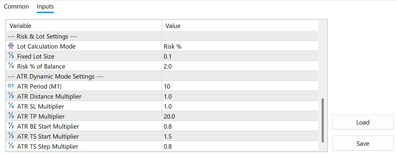 直近のボラティリティ(ATR)を計算し、エントリー距離、利確、損切を自動最適化。相場環境に合わせた「適切な距離」をEAが判断します。