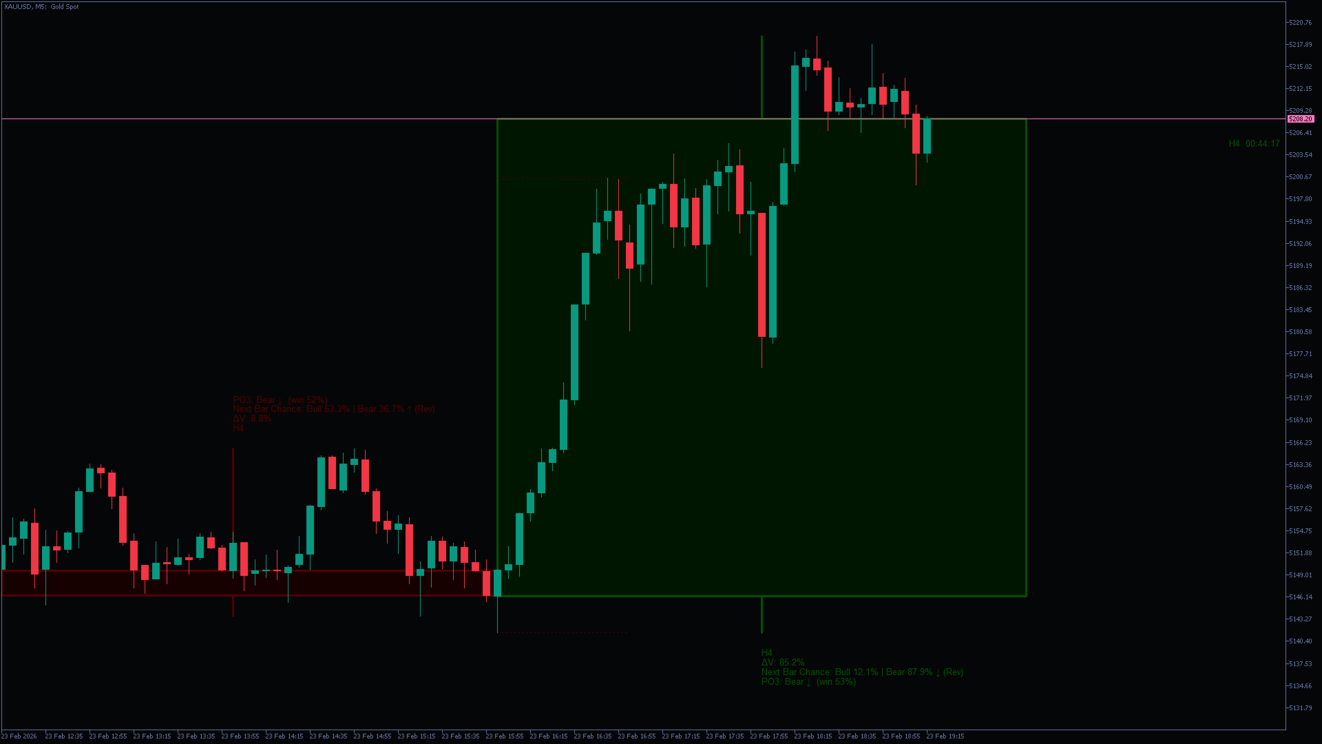 “Next Bar Chance: Bull XX% | Bear YY% ↑/↓/↔ (Cont/Rev)”