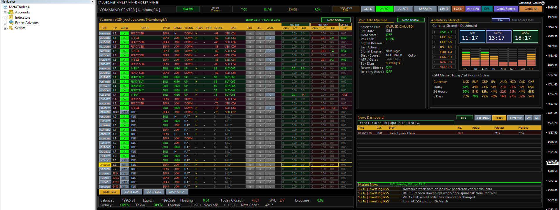 Command Center [tambangEA]は、トレーディングターミナルのダッシュボードおよび市場ワークフローツールです。利益を保証するシステムではありません。