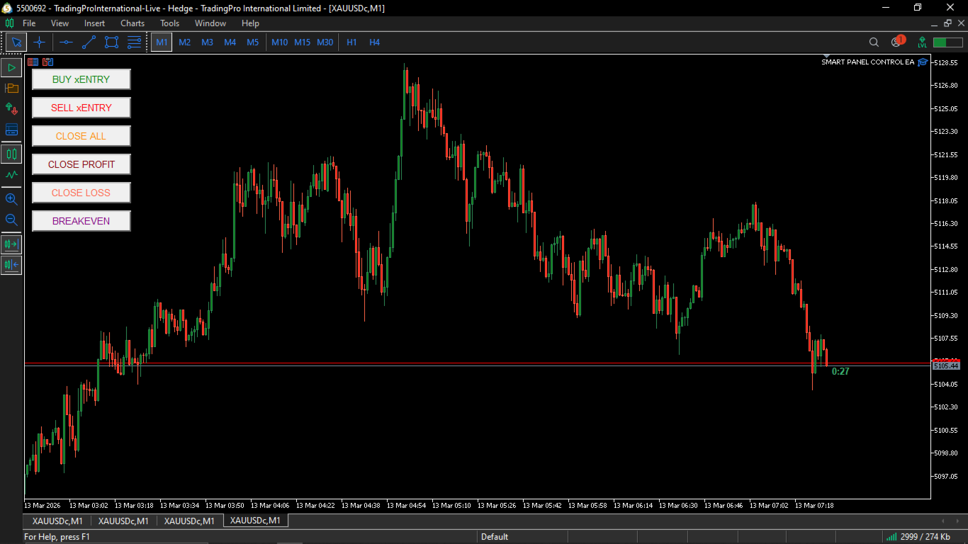 Smart Trade Panel pro is a powerful manual trading assistant designed for the MetaTrader 5 platform. This Expert Advisor provides a convenient on-chart control panel that allows traders to execute and manage trades quickly with just one click. It includes multi-entry Buy and Sell functions, Close All, Close Profit, and Close Loss options to help traders manage positions efficiently during active market conditions.