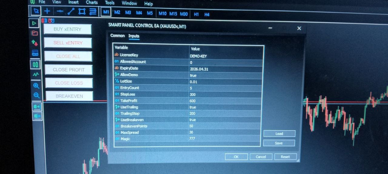 The EA also features built-in risk management tools such as automatic Stop Loss, Take Profit, Breakeven, and Trailing Stop to help protect trades and manage profits effectively. With its simple and user-friendly button interface, traders can control multiple positions directly from the chart without opening the standard order window.