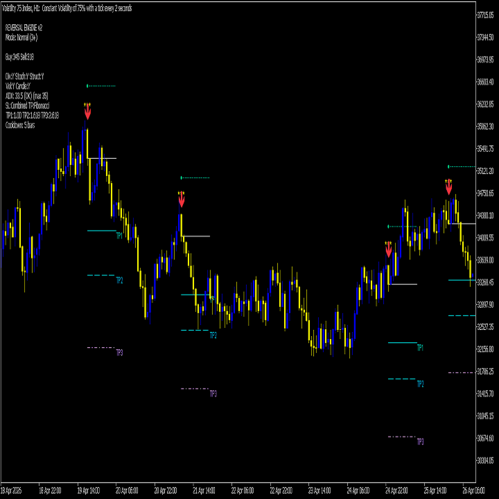 Reversals are the highest-reward trades in the market — but only if you enter at the right time and exit at the right level. The Precision Reversal Engine v2 combines five independent detection modules, an ADX trend filter, and a 3-tier Fibonacci TP system to give you the clearest, most actionable reversal signals available on MetaTrader 5.