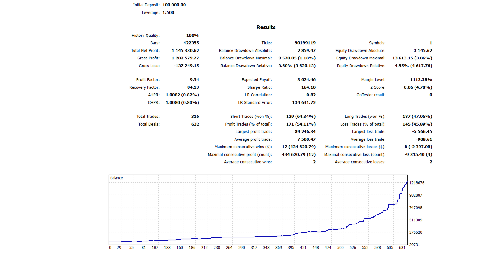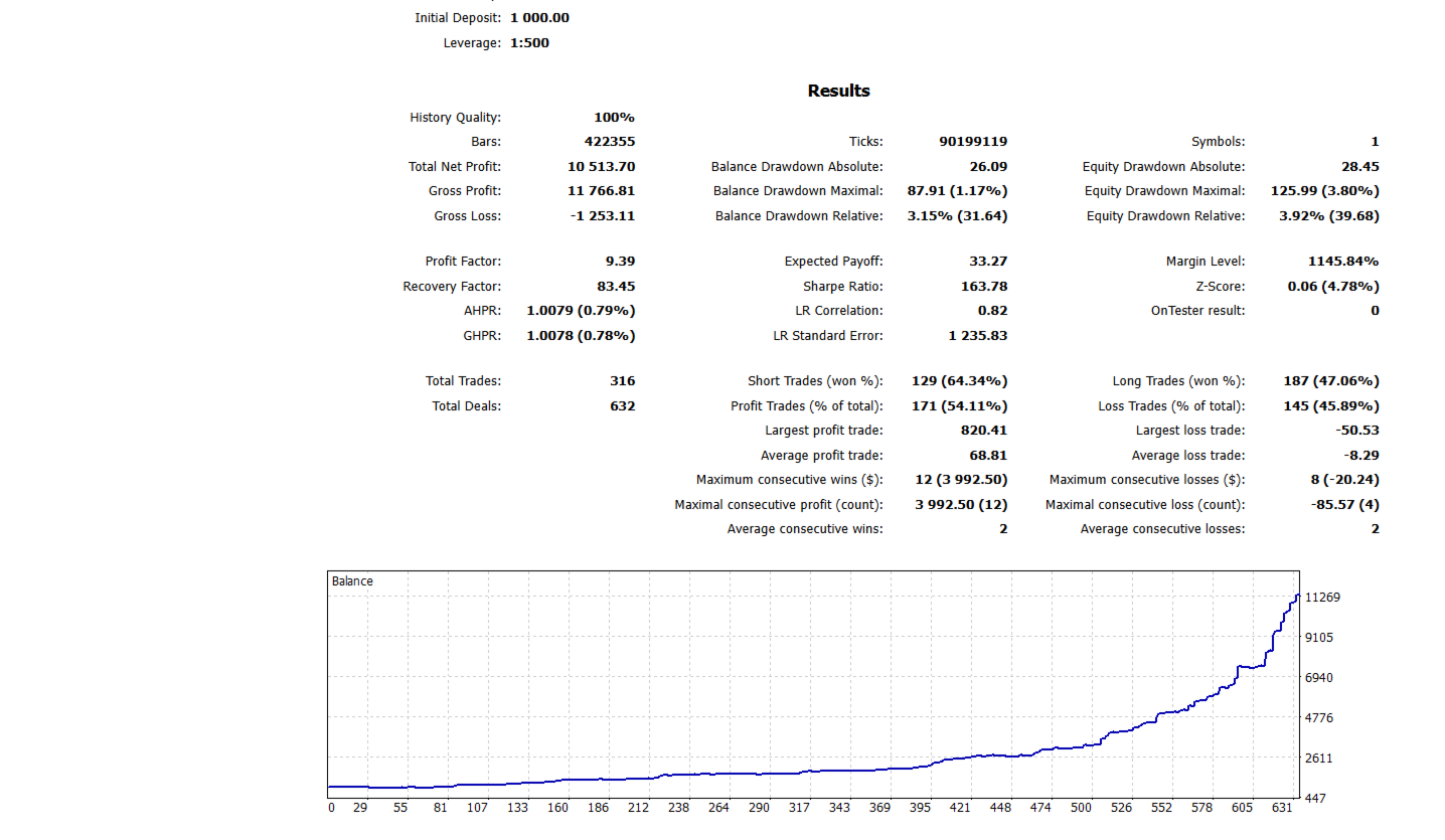 This is the power of percentage-based compounding. The backtest results shown — 1,145% on $100,000 and 1240% on $1,000 — were produced by simply running the EA with a fixed risk setting and allowing it to compound over 14 months. No manual intervention. No optimization between trades.