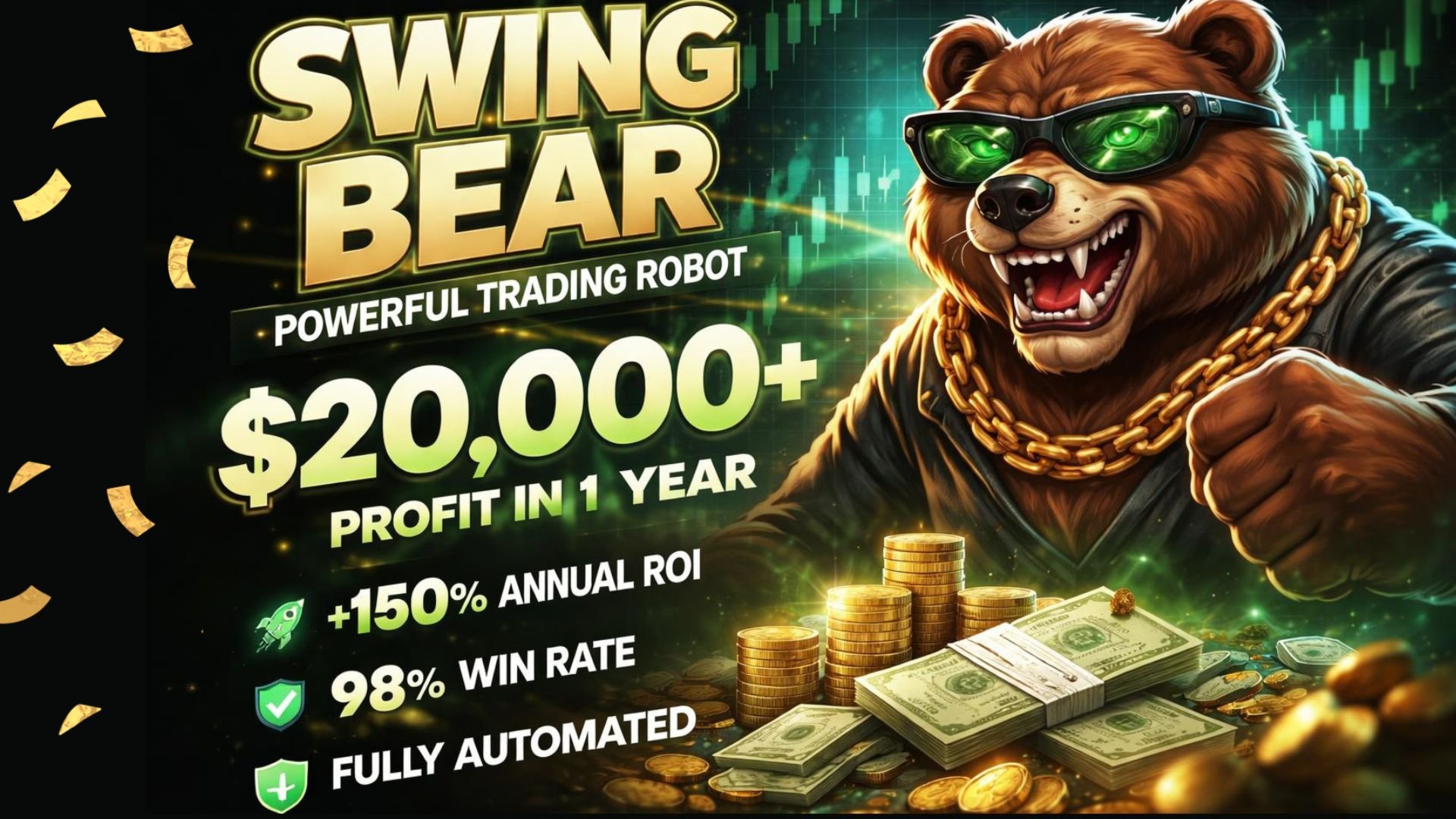 Swing Bear — スイングリカバリー(調整局面)を利用したゴールド(XAUUSD)取引用のアダプティブEAです。基本コンセプト:複合テクニカル指標に基づく反転シグナルが確認された際に、短期トレンドに逆張りでポジションを構築します。