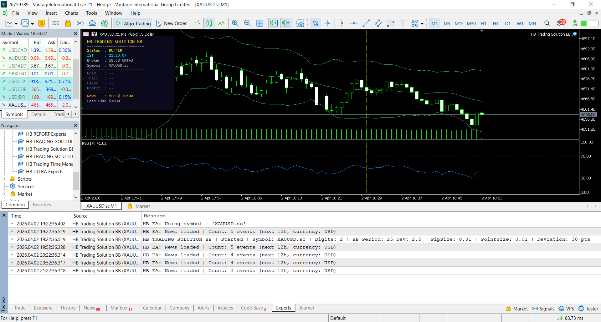 Designed specifically for XAUUSD (Gold) trading, HB Trading Solution BB is a